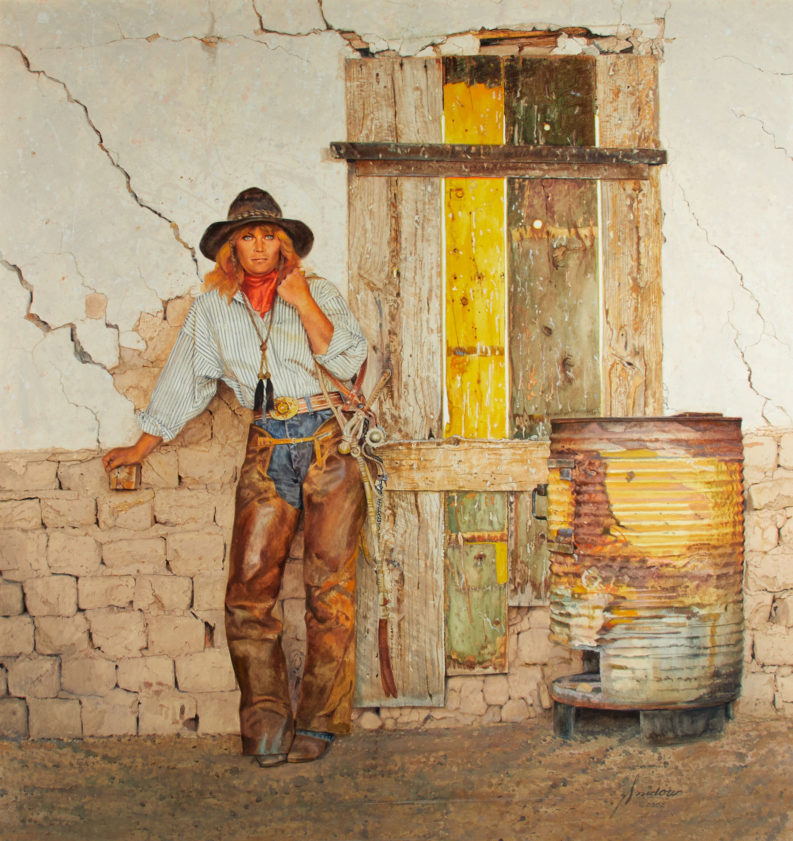 Another sculpture on offer is a full figure standing portrait by cowboy artist Gordon Snidow, titled Crazy Quilt. The figure is wrapped in a multi-colored, hand-painted quilt. This is a unique piece with foundry proof inscription. The auction includes another work by Snidow, titled The American Beauty. The painting depicts a woman cowboy standing against what appears to be a dilapidated building. Other painted works include a landscape by Maynard Dixon, a colorful riverbank piece by Birger Sandzén, a Neo-Expressionist painting by David Bates, and more. View any of these lots and register to bid on Bonhams.