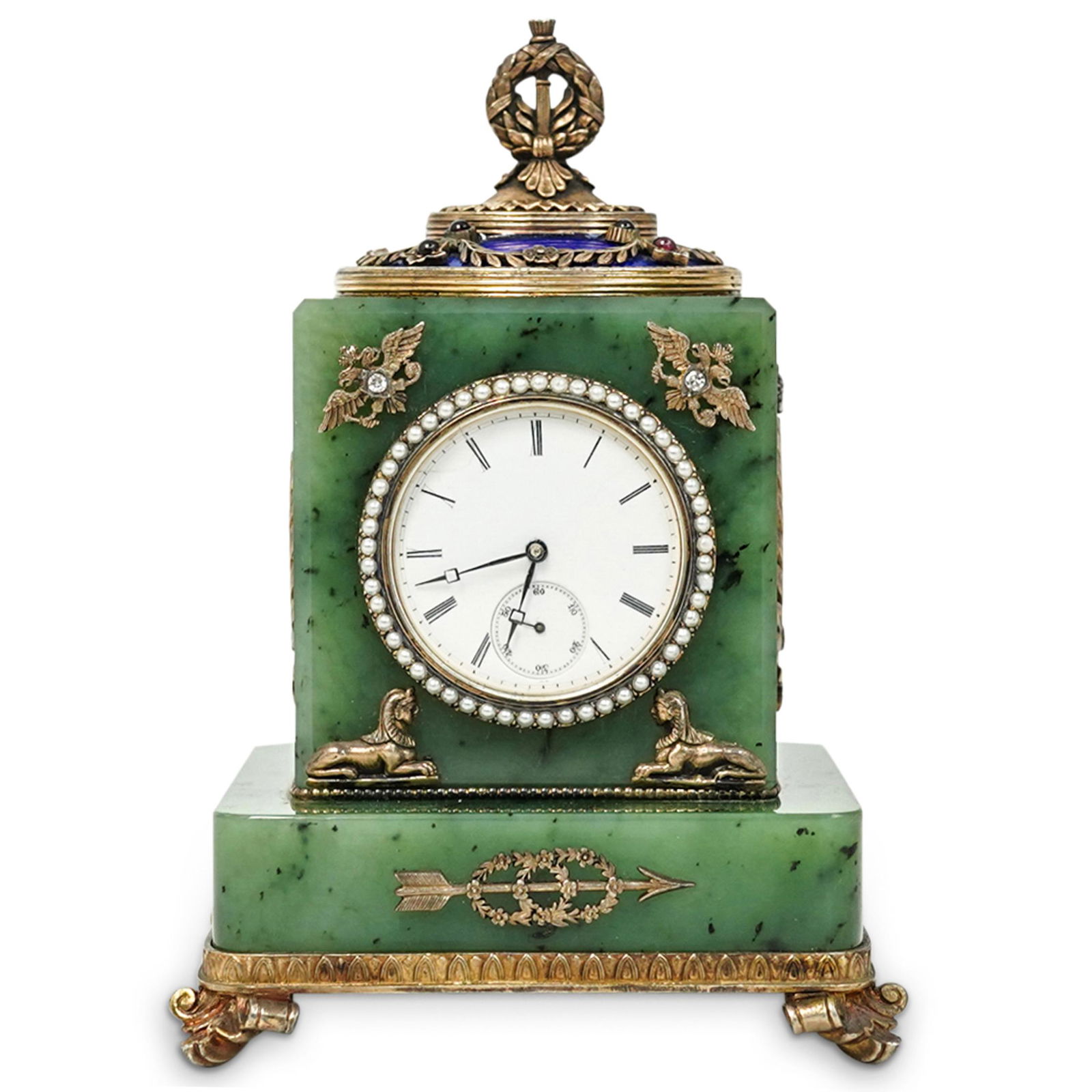 Faberge Nephrite, Enamel and Silver Gilt Clock |