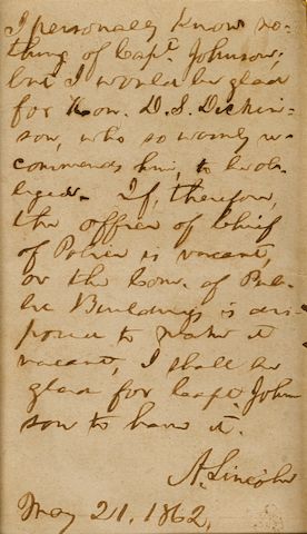 Lincoln Makes A Political Recommendation. Lincoln, Abraham. 1807-1865. |