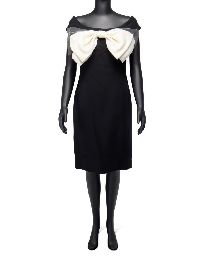Isaac Mizrahi Black Wool and White Silk Bow Mini Dress, 2011 |