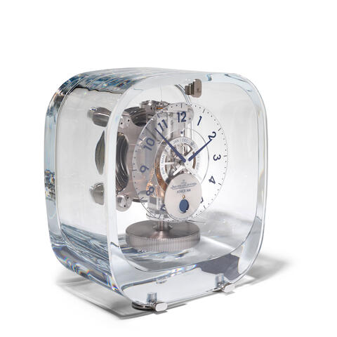 Jaeger-lecoultre. A Remarkable Glass Enclosed Atmos Clock With Month Calendar And Moon Phase |