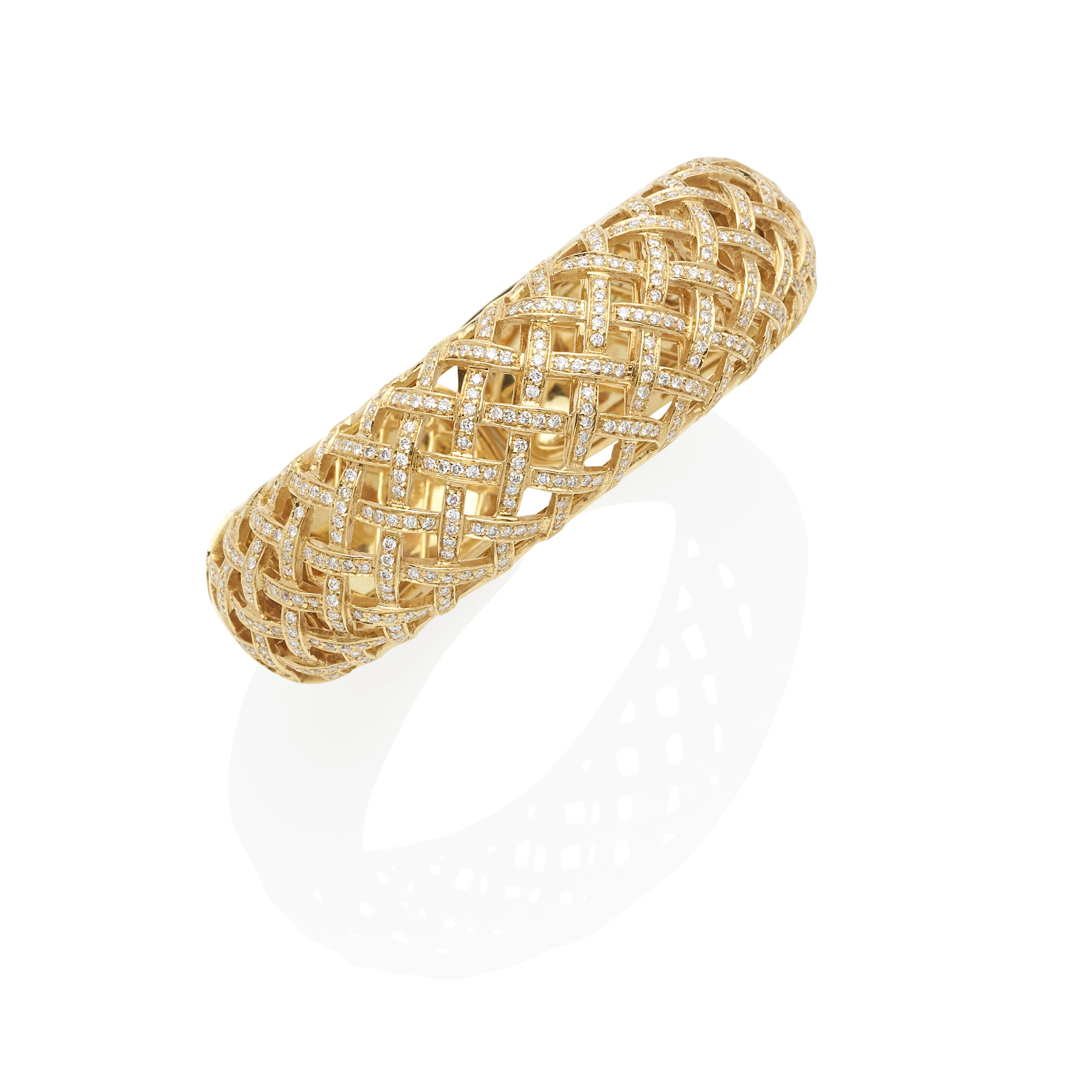 |  | 18K gold and diamond hinged bangle by Cassetti. | Estimate: |