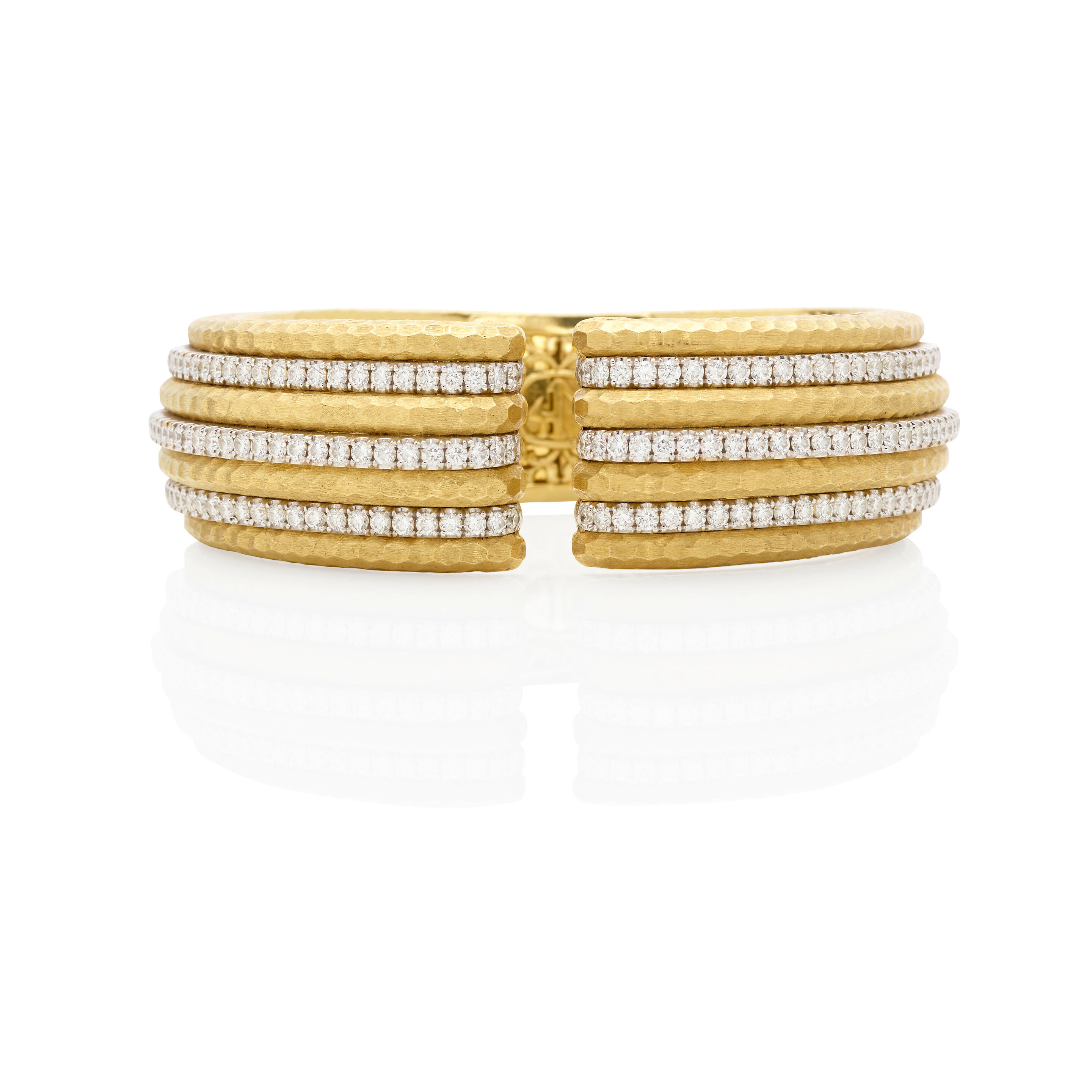 |  | 18K gold and diamond cuff bracelet by Jack Kelege. | Estimate: |