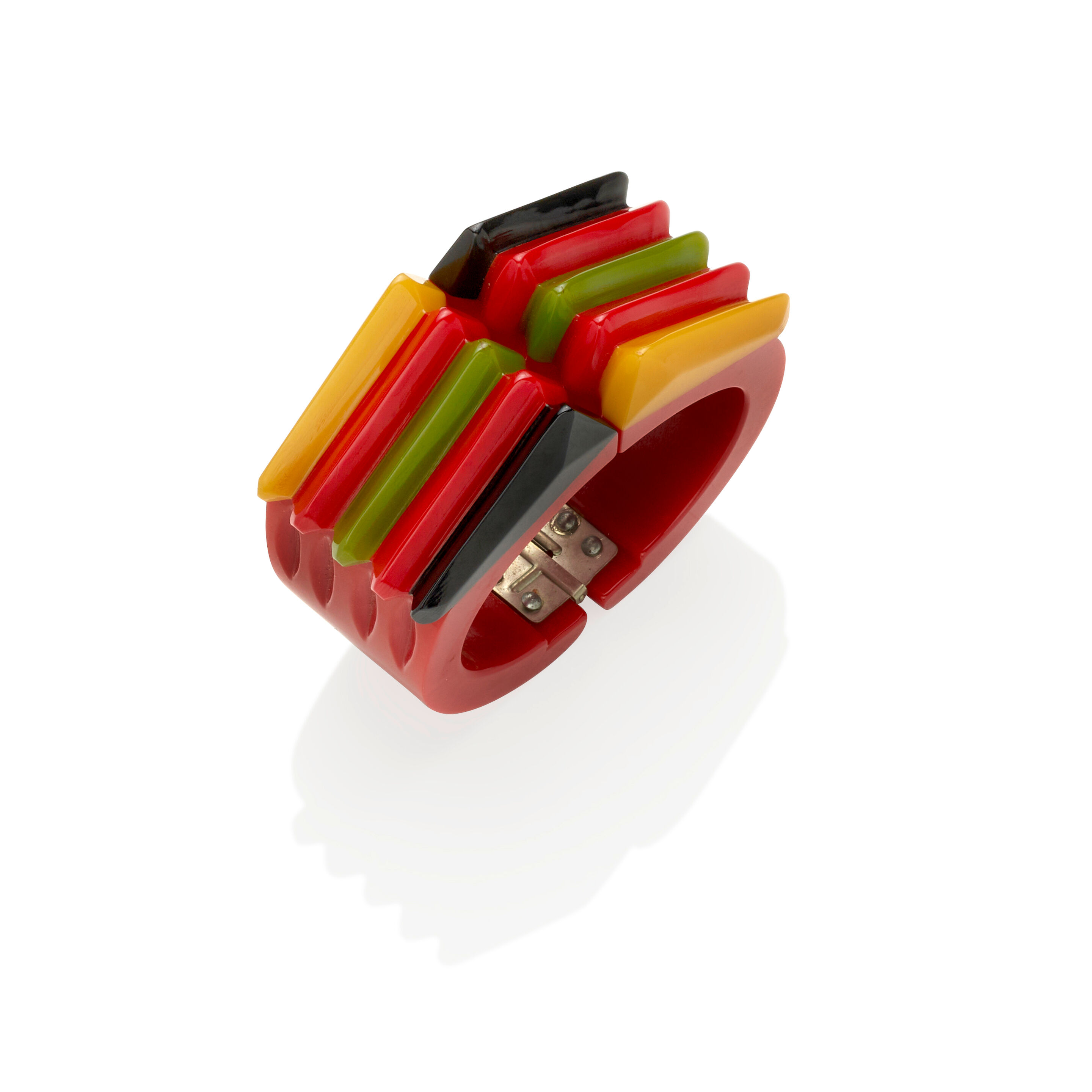 A Bakelite Multicolored Philadelphia Hinged Bangle Bracelet |