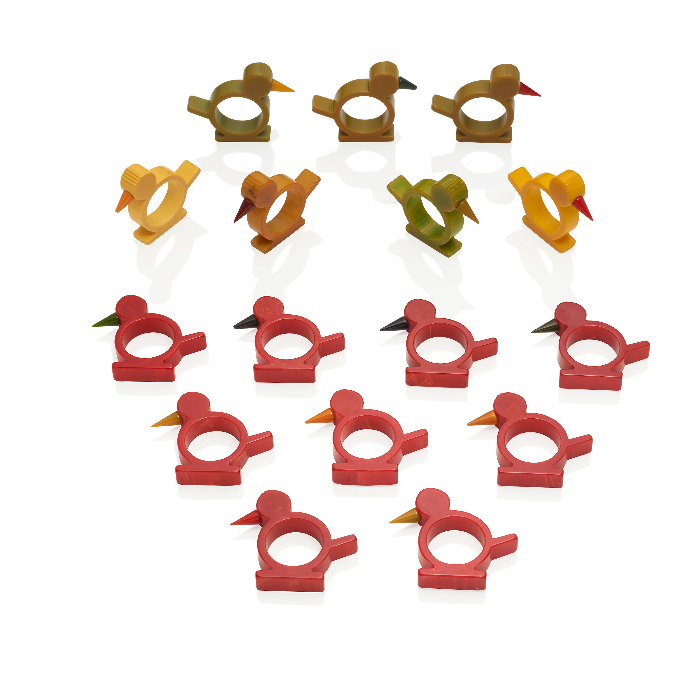 Sixteen Bakelite Bird-Form Napkin Rings |