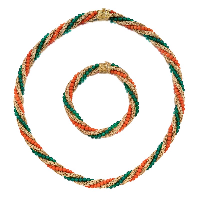 Bulgari Gold, Coral and Chalcedony Necklace and Bracelet |