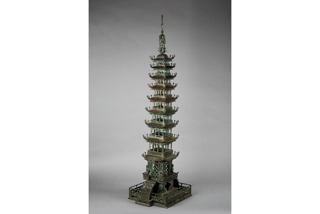 A LARGE BRONZE MODEL OF BUDDHIST PAGODA |