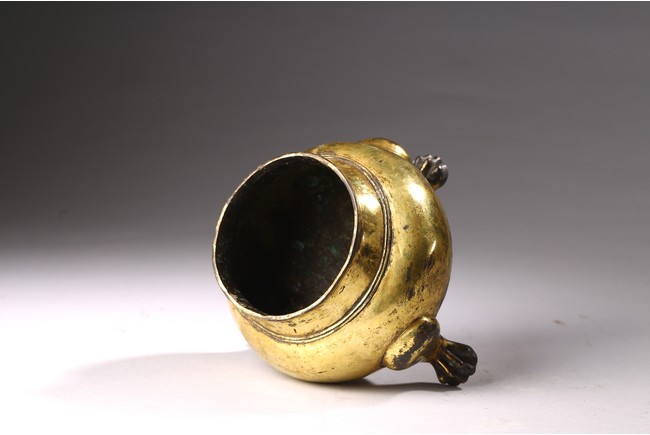 AN ARCHAIC GILT BRONZE GLOBULAR TRIPOD CENSER |