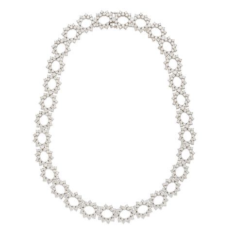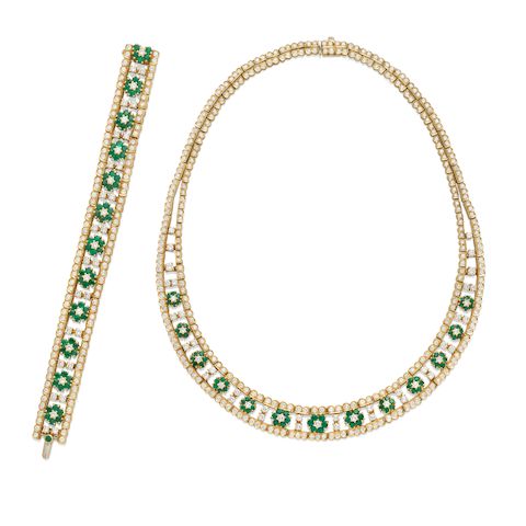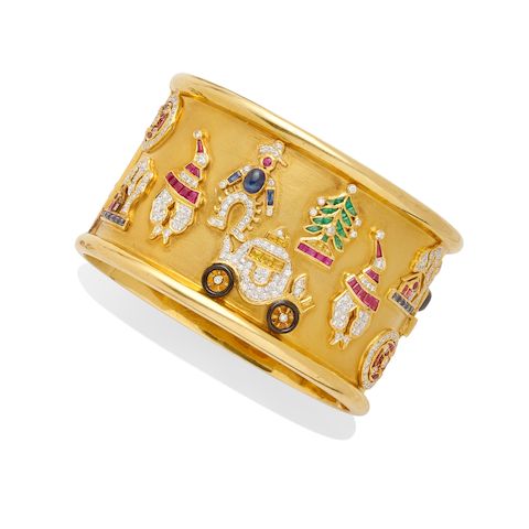 California Jewels, the upcoming auction presented by Bonhams, will include 368 lots of jewelry by Frank M. Trozzo, Piaget, Tiffany & Co, Marsh & Co., and others. Some of the highlights of the auction include a sapphire and diamond ballerina ring; a Christmas charm bracelet; a sapphire, ruby and diamond necklace and ear clip set; and a diamond and emerald necklace and bracelet.