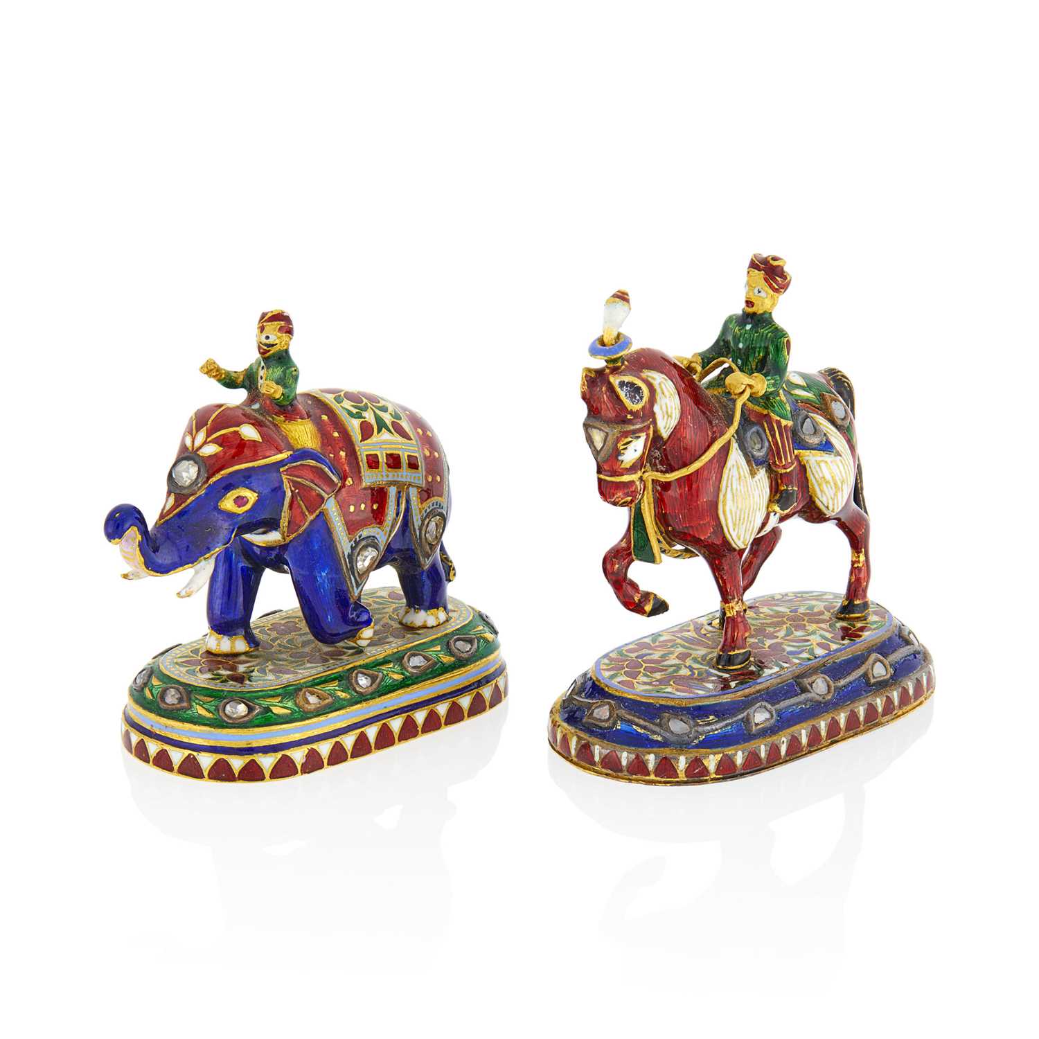 Two Indian High Karat Gold, Silver, Jaipur Enamel, and Diamond Chess Pieces |
