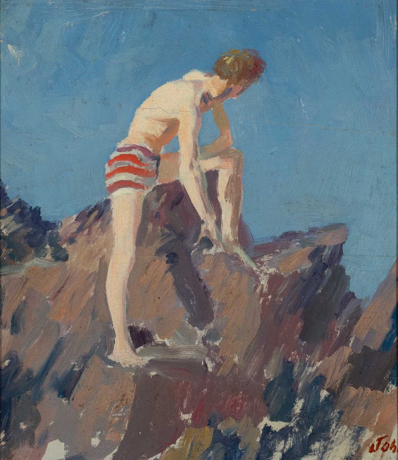 In its upcoming sale, Doyle will showcase items from Donald D. MacDermid’s historic home in Chester, Connecticut. Among the highlights are sculptural works, colonial Indian silver, and notable artworks by Henry Scott Tuke, Tom of Finland, and Edwin Augustus John. The sale also features an Edward Wormley stained pine shell console designed in 1941 and trompe l’oeil paintings including works by Yrjo Edelmann and Michael Theise. One of the top lots in the sale is a sculpture titled Hare on Globe Form by Barry Flanagan (1941 – 2009). The Irish-Welsh sculptor is renowned for his bronze statues of hares, human figures, and other animals.