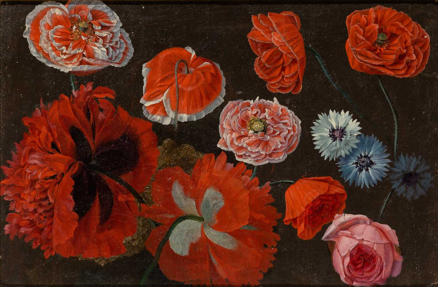 Pancrace Bessa French, 1772-1846 Red, Pink, and White Poppies, Cornflowers, and a Pink Rose |