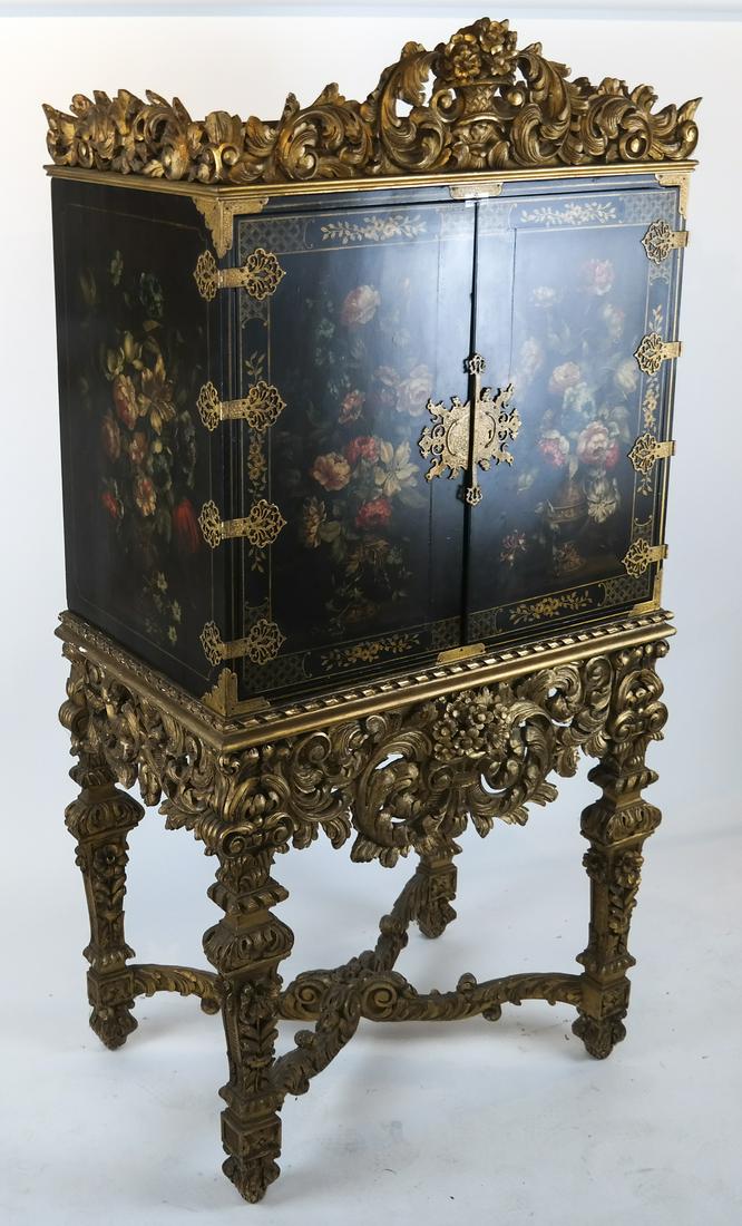 Ornate Floral Painted Silver Cabinet |