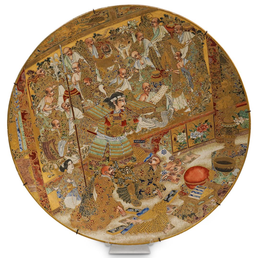 Elsewhere in the catalog, Asian antiques collectors will find a Japanese Satsuma porcelain charger. A samurai warrior stands in the foreground of this plate. Though his face, shoulders, and much of his armor are visible, his arms and legs are indistinguishable from a crowd of wise men who surround him. This piece is an example of late Satsuma ware, which was produced in 19th and 20th-century Japan with an eye toward Western tastes. Those interested in this or any other piece can register to bid on LiveAuctioneers.