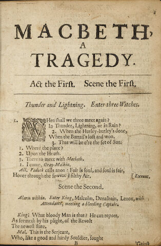 SHAKESPEARE, WILLIAM. 1564-1616. Macbeth: A Tragedy. Acted at the Dukes-Theatre. London: printed for William Cademan, 1673. |