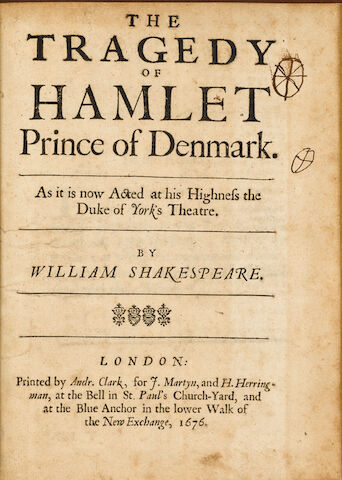 SHAKESPEARE, WILLIAM. 1546-1616. The Tragedy of Hamlet, Prince of Denmark. As it is now Acted at his Highness the Duke of York's Theatre |