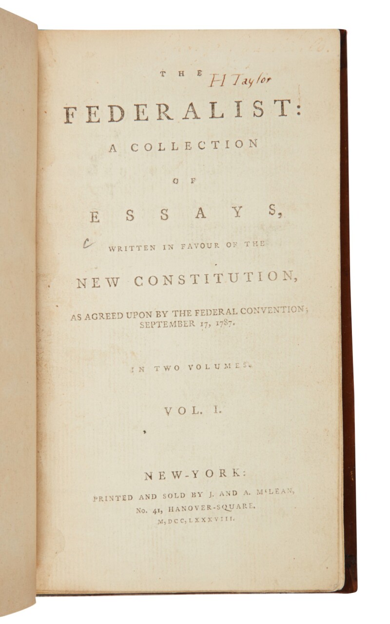 The Federalist. A Collection of Essays, Written in Favour of the New Constitution |