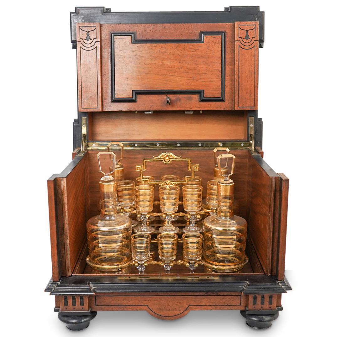 Antique Wood Tantalus Set |