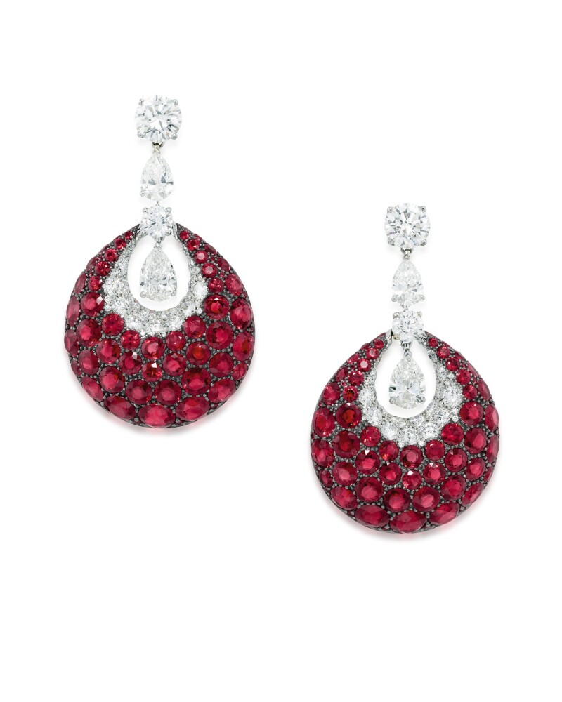 Graff | Pair Of Ruby And Diamond Bombé Pendant-earclips |
