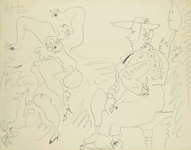 Picador et danseuse, India ink on paper by Pablo Picasso. |