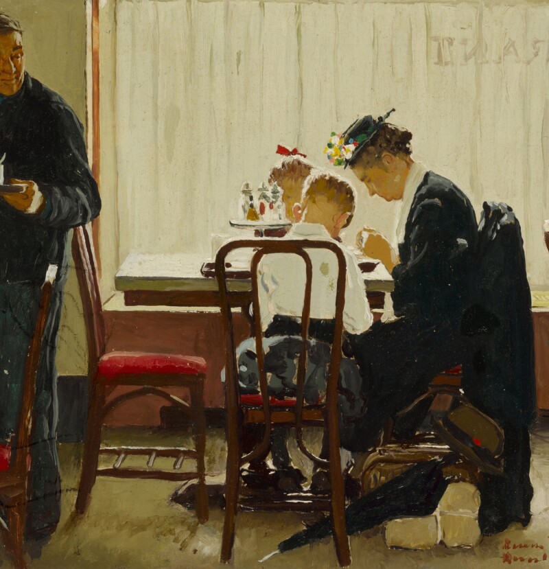 Two of the most well-known American artists of the 20th century, Norman Rockwell and Georgia O’Keeffe, have work available. Norman Rockwell’s study for Saying Grace is on offer. Viewers will notice one more child at the table, a little girl, than in the final composition. There are also a few missing pieces from this study, including two young, male onlookers who would eventually make their way into the painting, a reminder of Rockwell’s methodical approach. Meanwhile, Georgia O’Keeffe collectors will find Green Oak Leaves, an early example of the artist blurring the line between realism and abstraction. Those interested in this or any other piece can register to bid on Sotheby’s website.