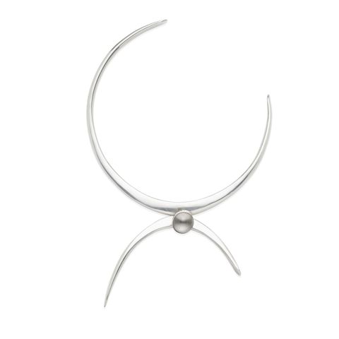 Another noteworthy lot is a sterling silver collar necklace designed by Art Smith. Inspired by Surrealist imagery, Smith crafted this piece with a round cabochon-cut moonstone and crescent-shaped pendant. The Afro-Caribbean jeweler often made pieces for avant-garde dancers. This particularly influenced the size and form of his jewelry. To view the complete auction catalog and register to bid online, visit Bonhams.