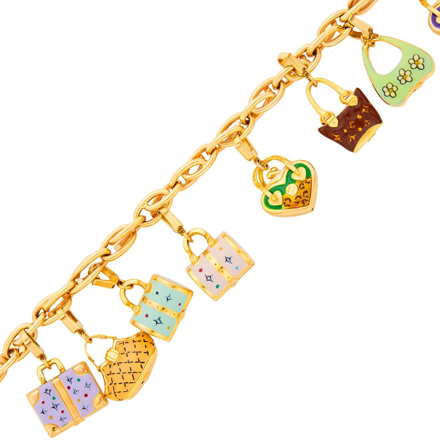 Gold and Enamel Handbag Charm Bracelet |