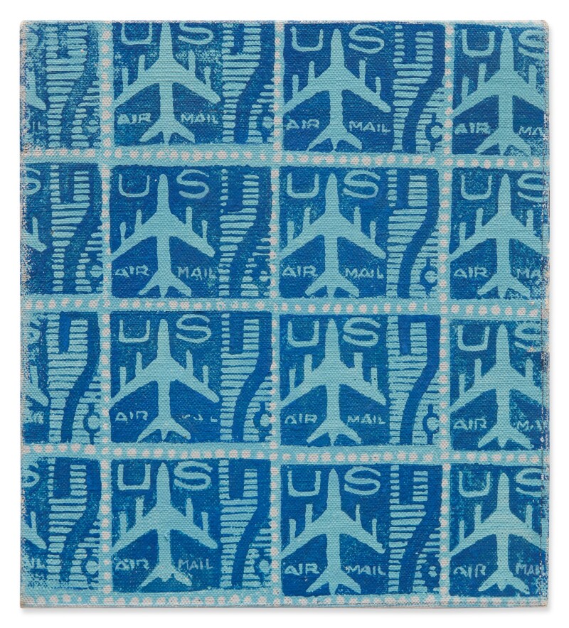 Blue Airmail Stamps acrylic on canvas by Andy Warhol. |