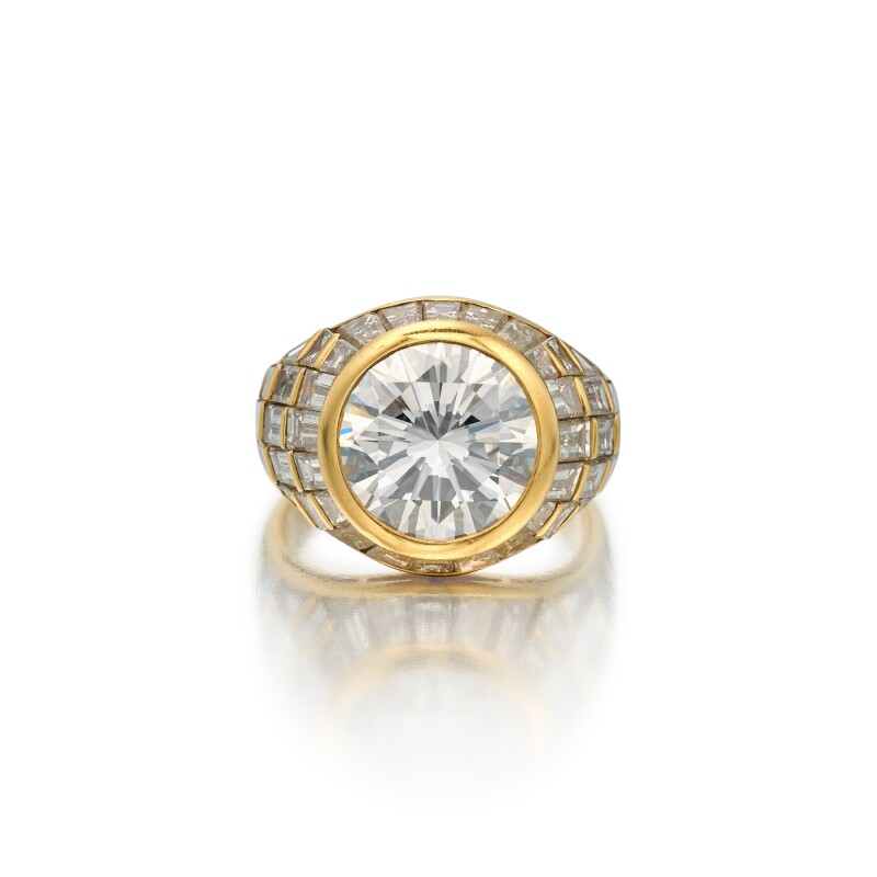 A pear-shaped fancy yellow diamond necklace also leads the listings. The chain is designed with alternating round and yellow diamonds. The accenting round diamonds weigh a total of approximately 1.30 carats, and the fancy yellow diamonds weigh 15.83 carats. Also known as canary diamonds, yellow diamonds are the most prized among the fancy variety. To view the complete catalog and register to bid online, visit Sotheby’s.