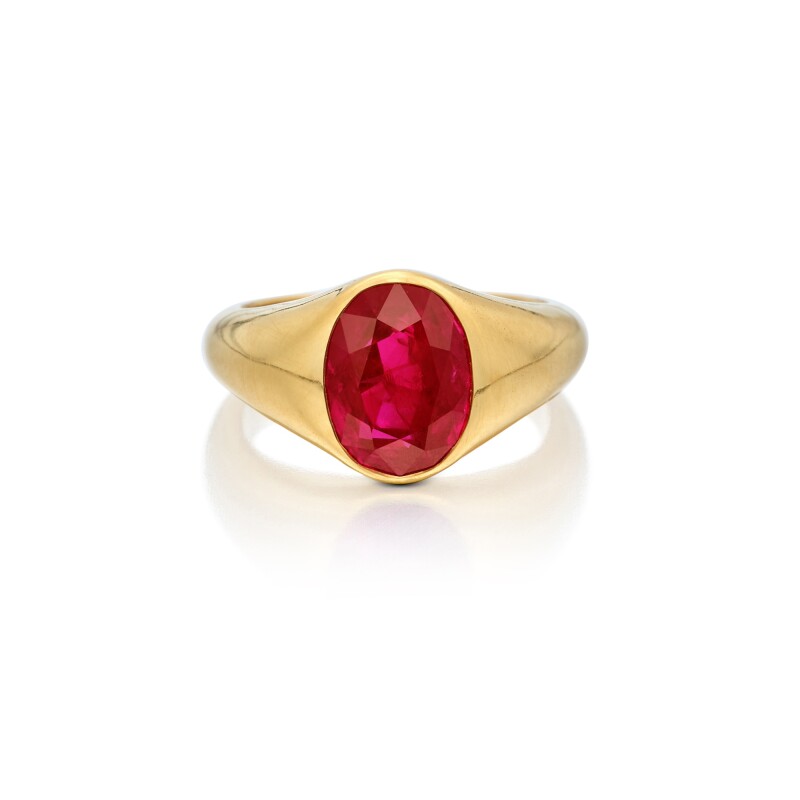 The blood red variety of rubies from Myanmar (formerly Burma) is considered to be a sought-after one among precious stones. Often compared with the color of pigeon’s blood, the red ruby is valued for its exceptional rarity. Associated with regal status, the red ruby signifies passion and warmth. A ring made of an oval-shaped red ruby of Burmese origin is a key highlight of Sotheby’s upcoming Fine Jewels sale. Weighing 4.69 carats, the ruby is designed in a lightly brushed bezel mounting and is set in a 22-karat gold ring. Another striking piece studded with rubies, spinels, and diamonds is a Michele della Valle necklace. The wide bib-shaped piece is fashioned with floral motifs centering spinel cabochons. The petals are accented with round rubies and diamonds. Jeweler-designer Michele della Valle is celebrated for his dream-like creations designed with colored gemstones.