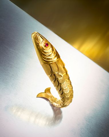 Jewelry pieces that are rare to find add life to this sale – pieces such as lapis lazuli ‘Panthère’ brooch from circa 1965. Lapis, one of the oldest gemstones in history, were richly inlaid in the sarcophagus of King Tutankhamen and other Egyptian kings and queens. View the full catalog and register to bid online on Bonhams.