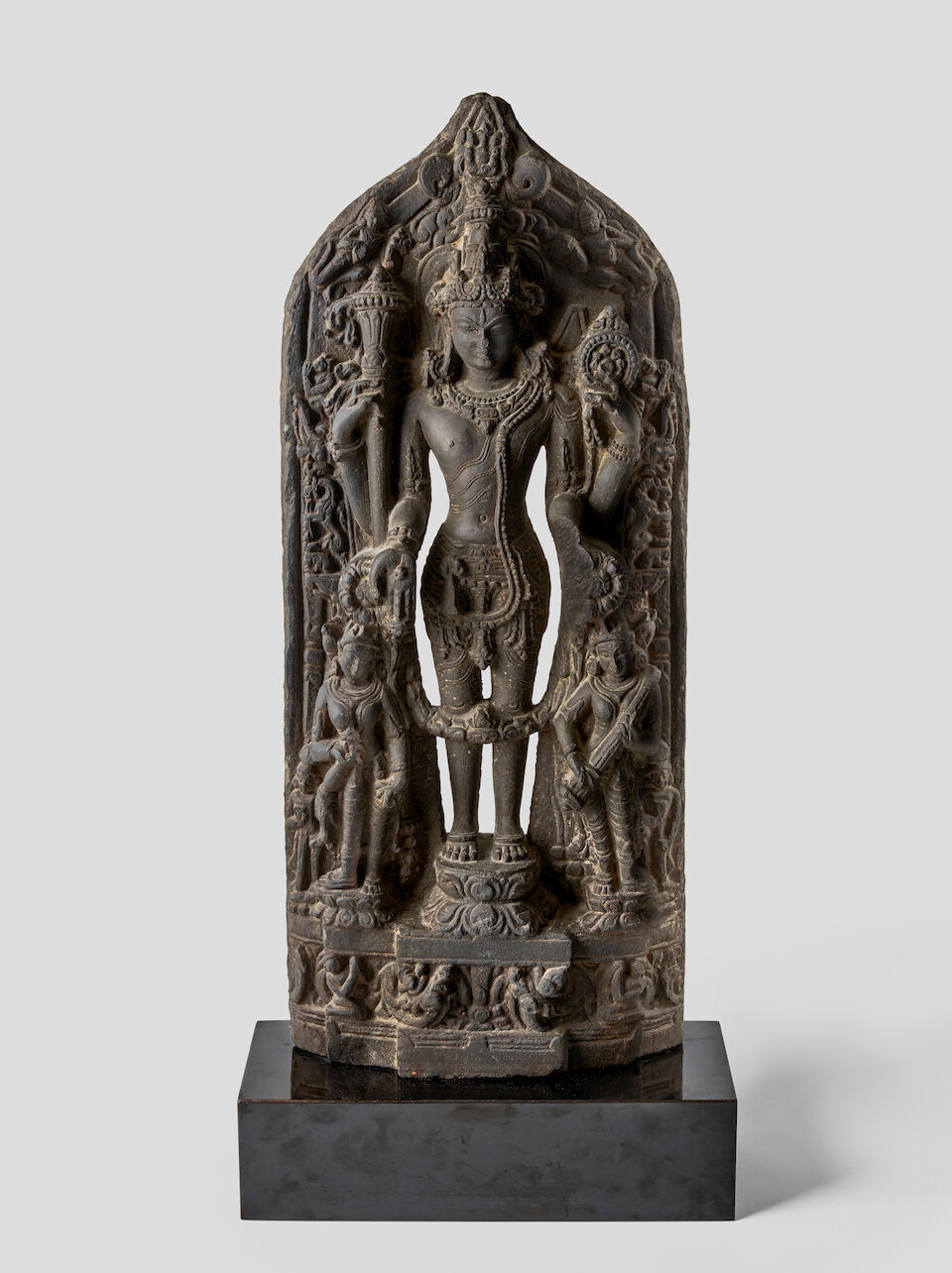 Another opaque watercolor by provincial Mughal artist Muhammad Faqirullah Khan leads the listings. The illustration from the Ragamala series, Lalita Ragini, has highly intricate details on the painted surface. These include the blue sky dotted with stars at the crack of dawn and a terrace ornamented with a floral carpet. It also shows a man departing from his lover and looking back at her resting figure. Additionally, the auction features a palm leaf folio illustrated on both sides. It depicts scenes from Lavanyavati, a poem composed by the renowned Oriya poet Upendra Bhanja in the 18th century. To view the complete catalog and register to bid online, visit Bonhams.