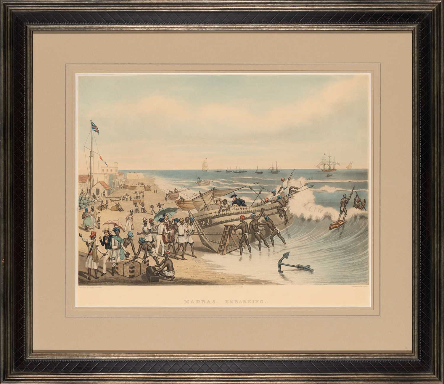 [India - Ackermann Prints] Hunt, Charles After East, Sir James Butler. Madras Landing [And:] Madras Embarking. |