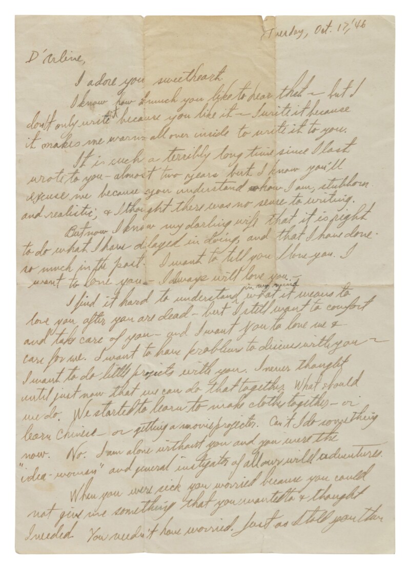 Love letter from Richard Feynman to his first wife Arline, written 16 months after her death in 1946 |