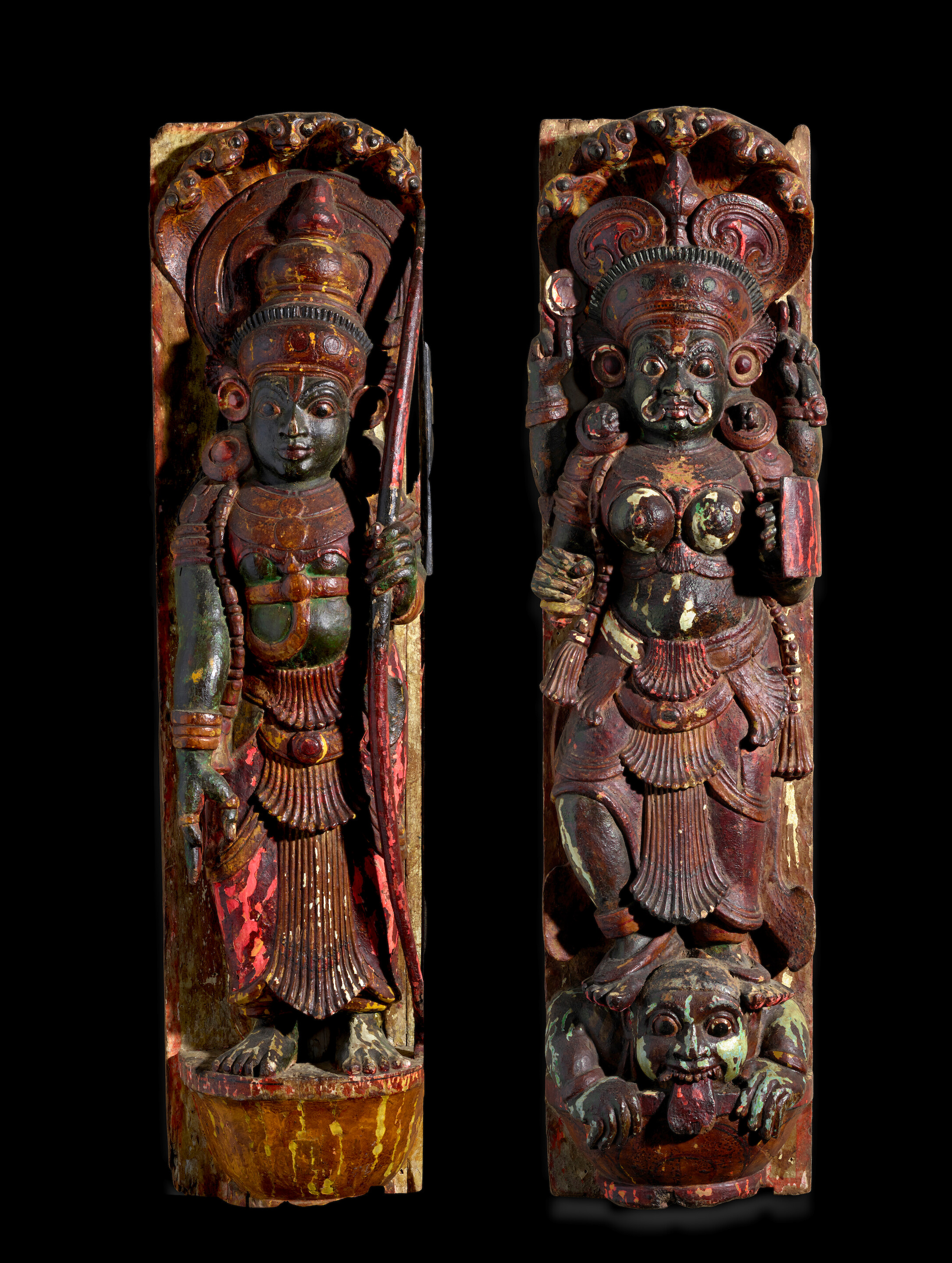 A Pair Of Carved Polychrome Wood Panels Of Devi. |