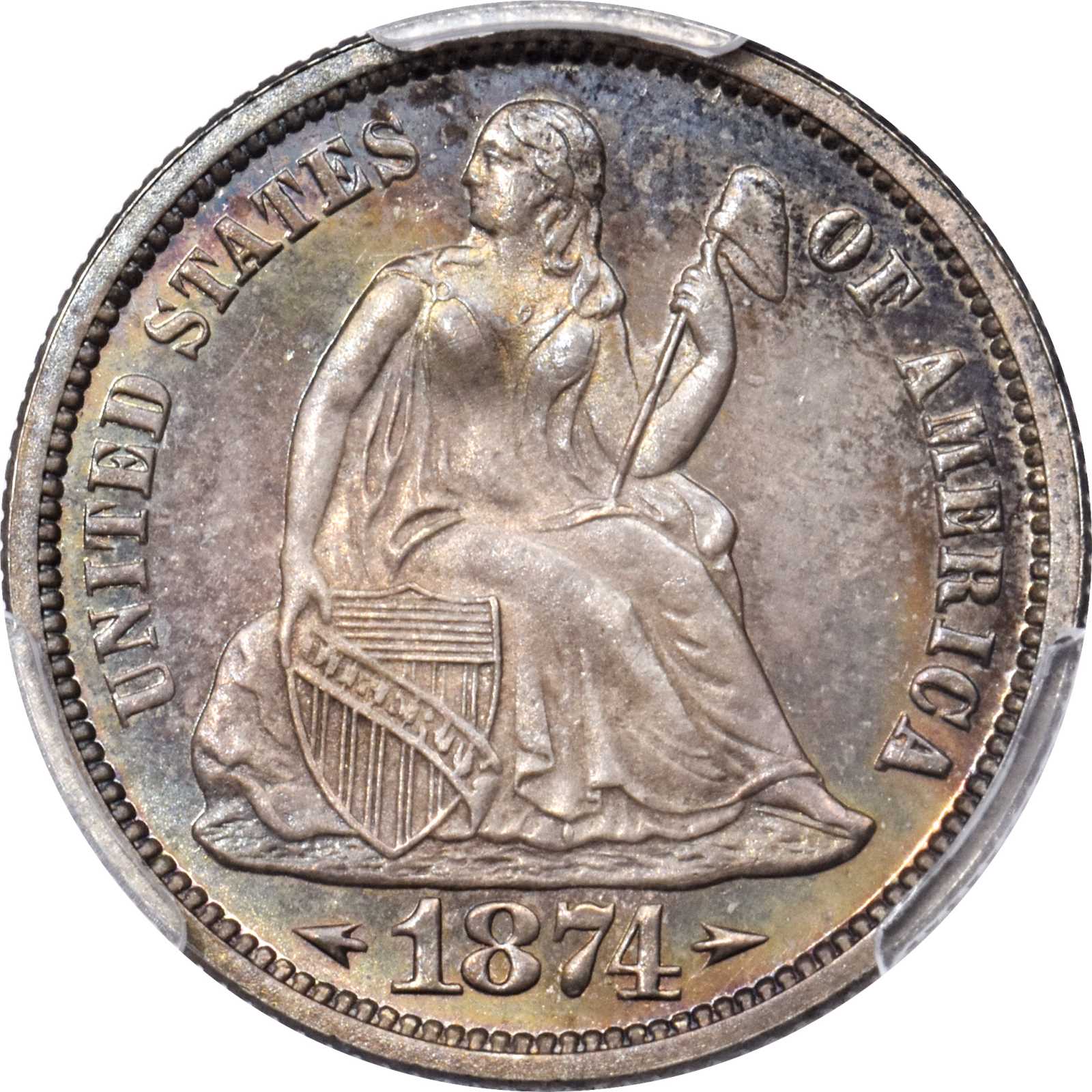 | 1874 Liberty Seated Dime. |