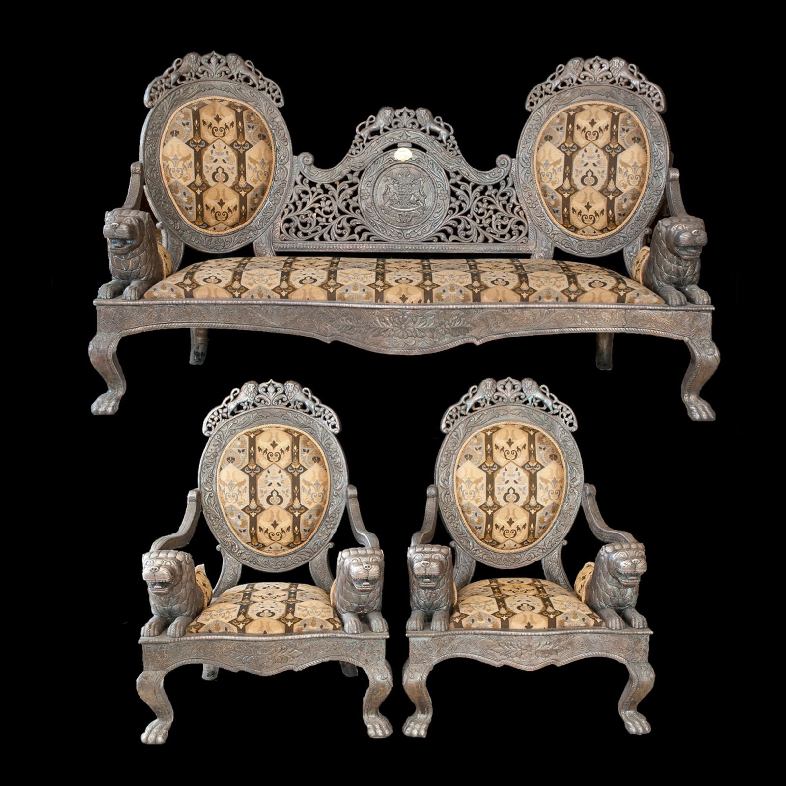 Decorative art collectors can also consider a 183-piece flatware set in its original mahogany display case. The set was produced in Peru by Carlo Mario Camusso’s silver company. An immigrant from Italy, Camusso eventually controlled most of the silver production in Peru by the start of the 20th century. This set contains, among many other pieces, 12 ice cream spoons, 24 dinner knives, and utensils specifically for serving cake.