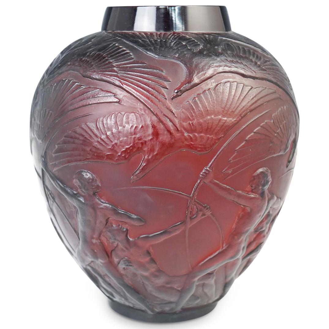 Akiba Antiques’ latest Eclectic Collection of Estates Worldwide sale includes nearly 650 lots from across several categories. Featured in the auction is a René Lalique glass vase produced in the 1920s. René Lalique began making vases at the turn of the 20th century after already achieving success as a jewelry maker. Birds with spread wings, shown swooping down towards several archers, decorate this particular vase.