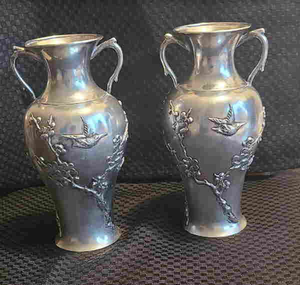 Ning Zhao Ji export silver pair vase |