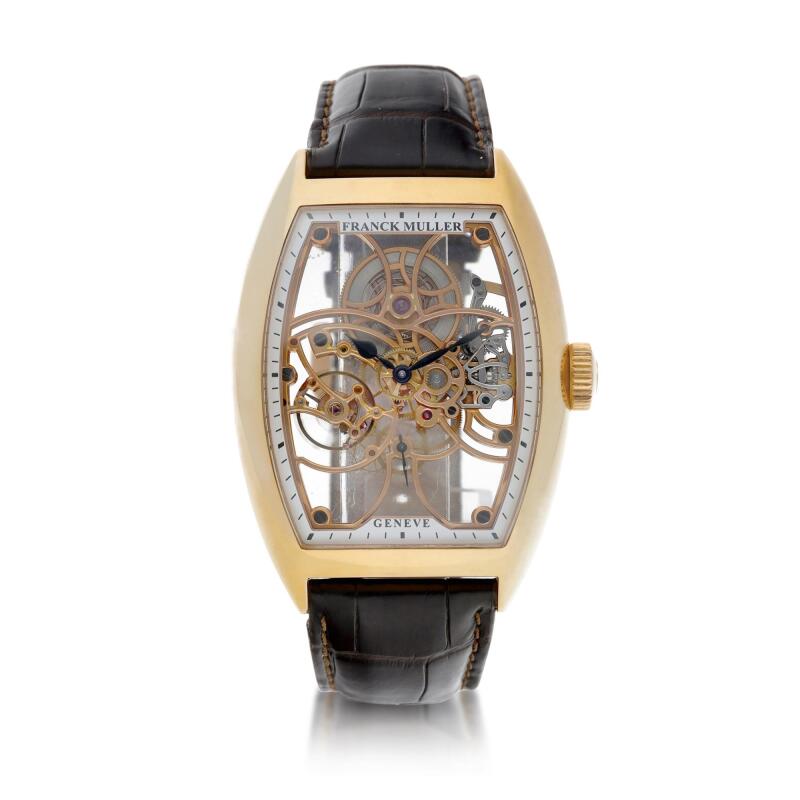 Franck Muller Reference 8880 B S6 SQT Cintrée Curvex Skeleton A pink gold skeletonized tonneau-shaped wristwatch with date, Circa 2016 |