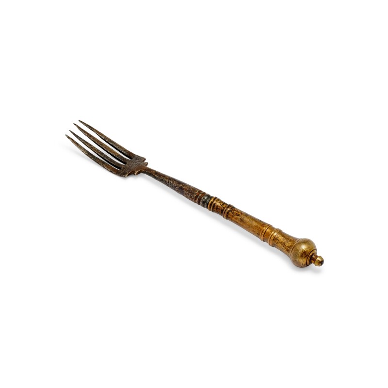 Early Rococo Brass and Iron Two-Tang Fork. |