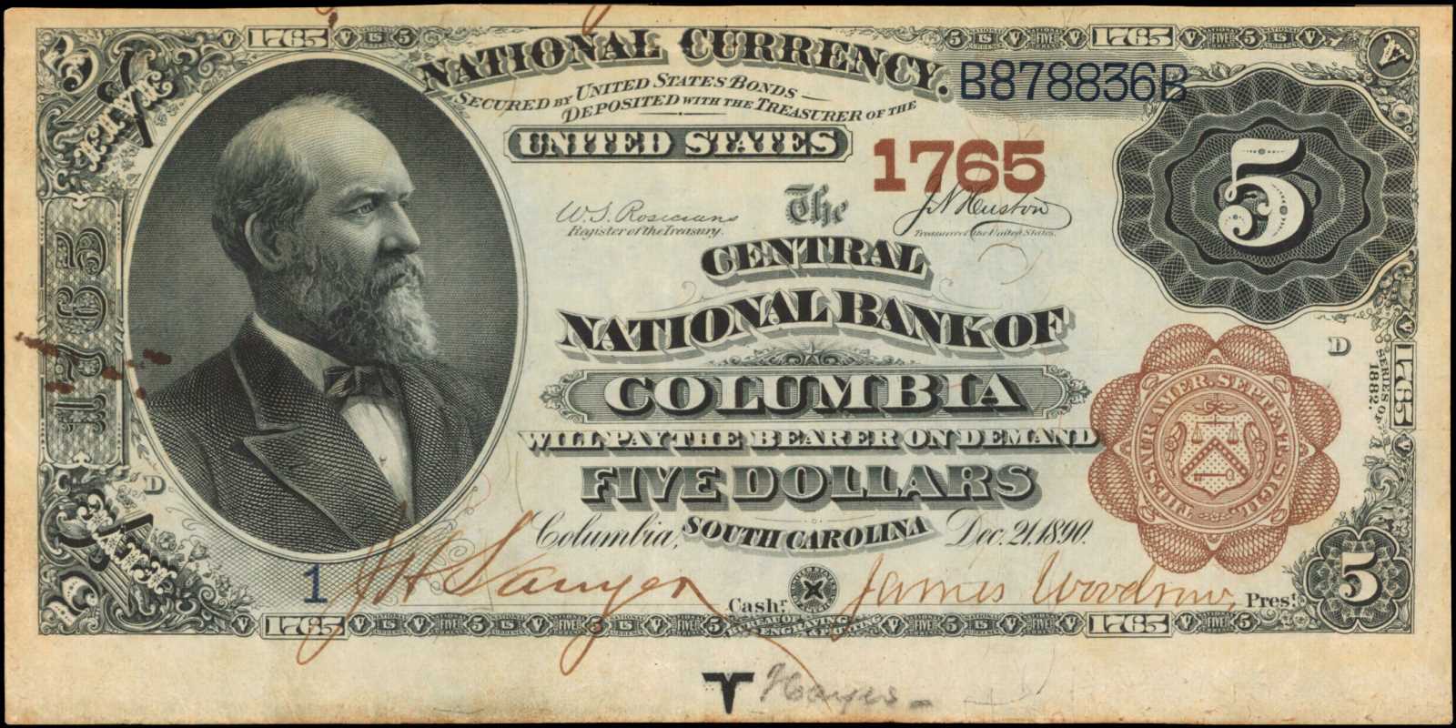 | Columbia, South Carolina. $5 1882 Brown Back. Fr. 471 |