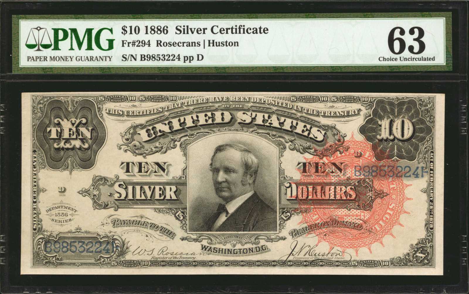 | Fr. 294. 1886 $10 Silver Certificate. PMG Choice Uncirculated 63 |