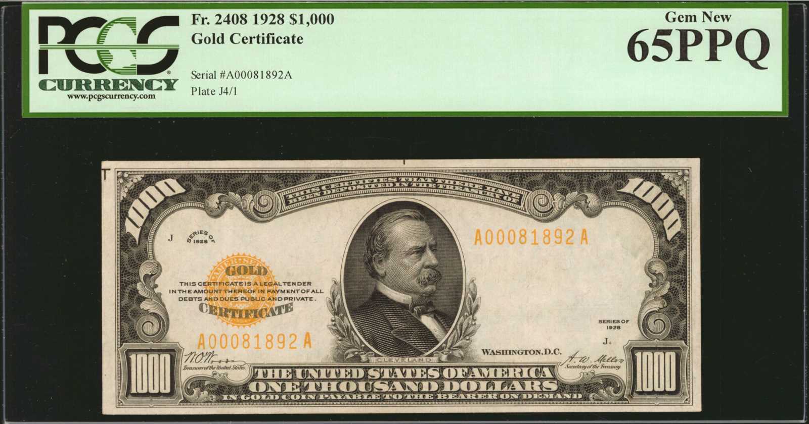 | Fr. 2408. 1928 $1000 Gold Certificate |