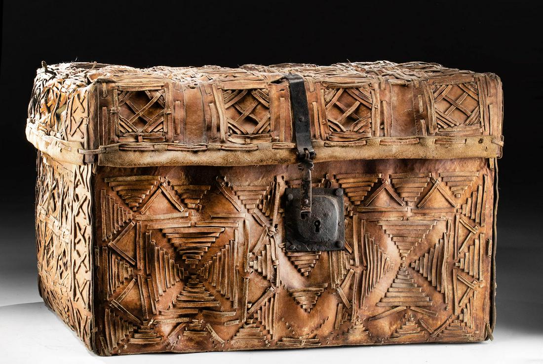 18th C. Mexican Colonial Leather Petaca Traveling Trunk |