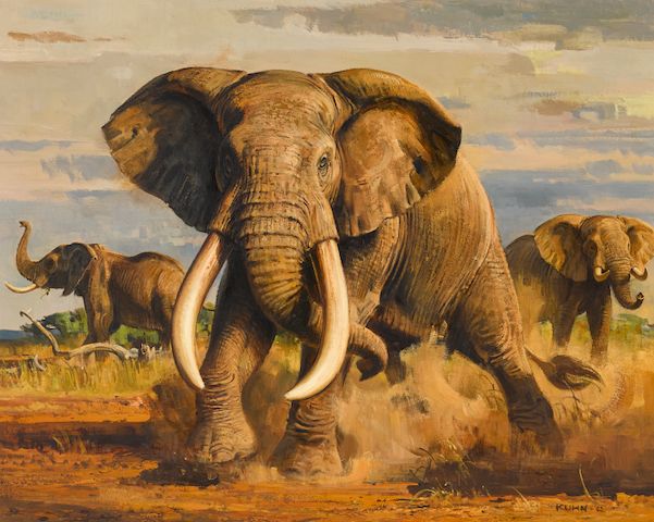 BOB KUHN (1920-2007) Elephants in the African Veldt |