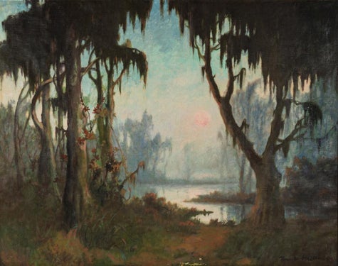 The winning bidder, Belle Meade Plantation (now a house museum and historic site open to the public in Nashville) nosed out underbidders on the telephone and internet, after launching a campaign among supporters and on social media to raise money to buy the painting. A portrait of another Belle Meade horse, “Springfield,” by Thomas Scott (Kentucky, 1824-1888) raced to $7,920 (est. $3,400-3,800), selling to an anonymous phone bidder. Two museums competed against a dealer bidding by phone for a painting by William Frye (Alabama, 1822-1872) depicting an unnamed African American man standing in front of an edition of the Louisville Commercial newspaper (known for its anti-slavery leanings). Despite some tears to the canvas, it hammered down to one of the museums for $15,000. (The same institution also purchased a rare sampler made by an African girl in an English missionary school in Sierra Leone for $3,840). A folky early 19th century portrait of a little girl in a painted chair, descended in the Moran family of Middle Tennessee, blew past its $1,000-1,200 estimate to $8,640. Other Southern paintings of noted included a painting of a house by New Orleans artist James Michalopoulos, $5,040; a large house paint on wood panel painting of a dancing woman by Mose Tolliver, $4,096, and a Tennessee landscape by Thomas Campbell, $1,140. Memory paintings by Helen LaFrance (Kentucky, b. 1919) ranged from $1,320 for a still life to $6,240 for a detailed Church Picnic scene. A Carroll Cloar self-portrait lithograph titled “The Ingredients” sold for $3,480 against a $500-600 estimate, and a Charles William Smith woodcut of a Charleston, SC graveyard rested at $1,920.