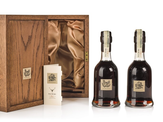 The Dalmore 62 Year Old is one of the oldest whiskies to have been released from the Dalmore Distillery, with only 12 bottles made available. The sale will present Bottles #2, “The Mackenzie” and Bottle #5, “The Cromarty”, estimated at £75,000-100,000 per bottle.